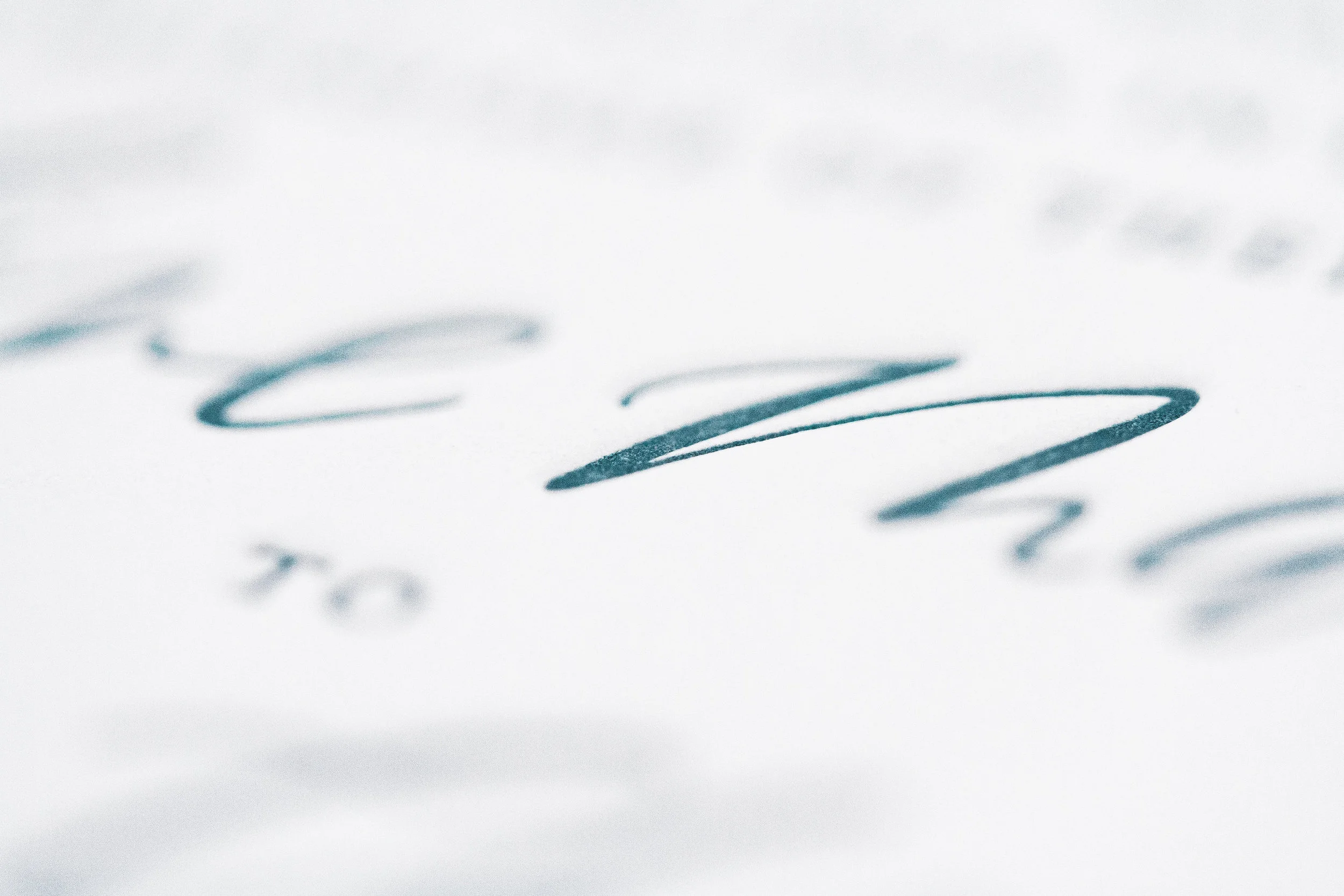 Letterpress printing requires a printing press. A custom die is created and inked, and pressed into a thick, heavy-weight stock. This process causes a relief effect, creating an amazing texture and luxe feel. Because the process is intensive, requiring mixed inks and custom plates, it is much pricier than other printing methods.